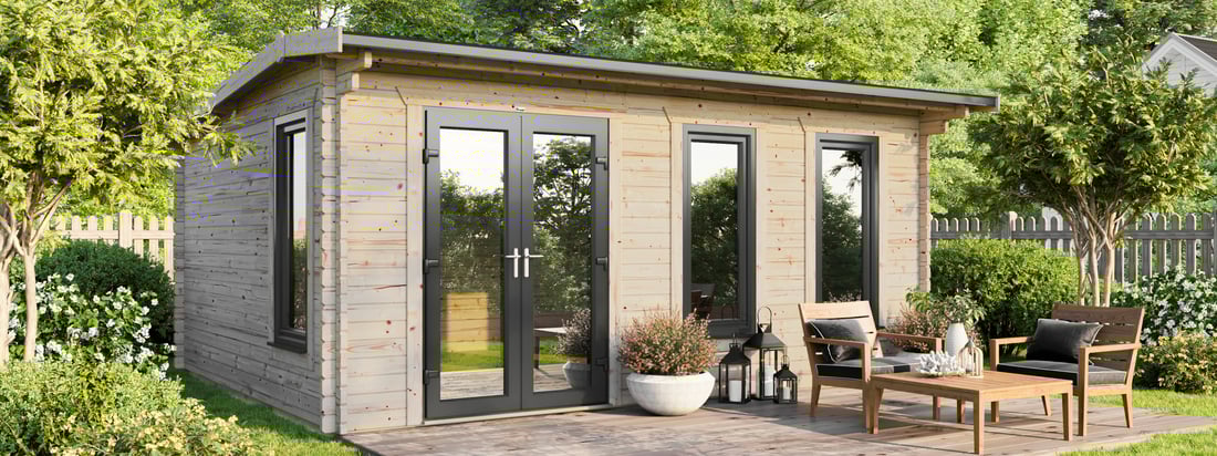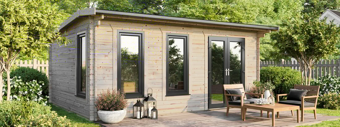 - 5990mm (19ft 8") Wide Log Cabin - Compact Modern design.
