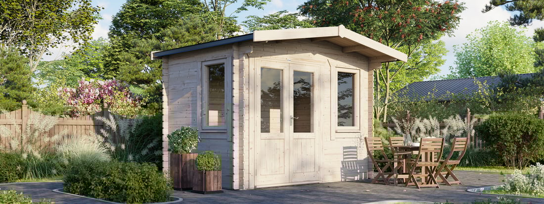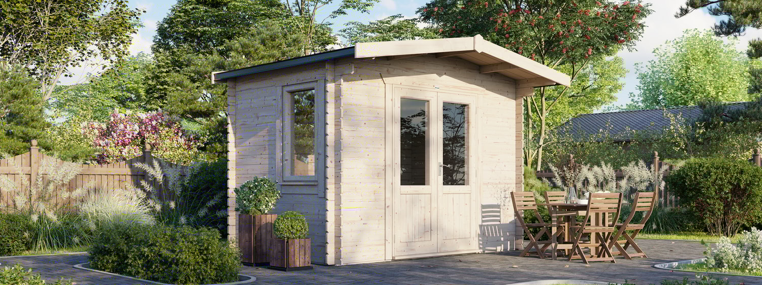 - 3590mm (11ft 8") Wide Log Cabin. - Compact Modern design.