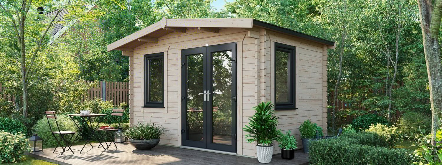 - 3590mm (11ft 8") Wide Log Cabin. - Compact Modern design.