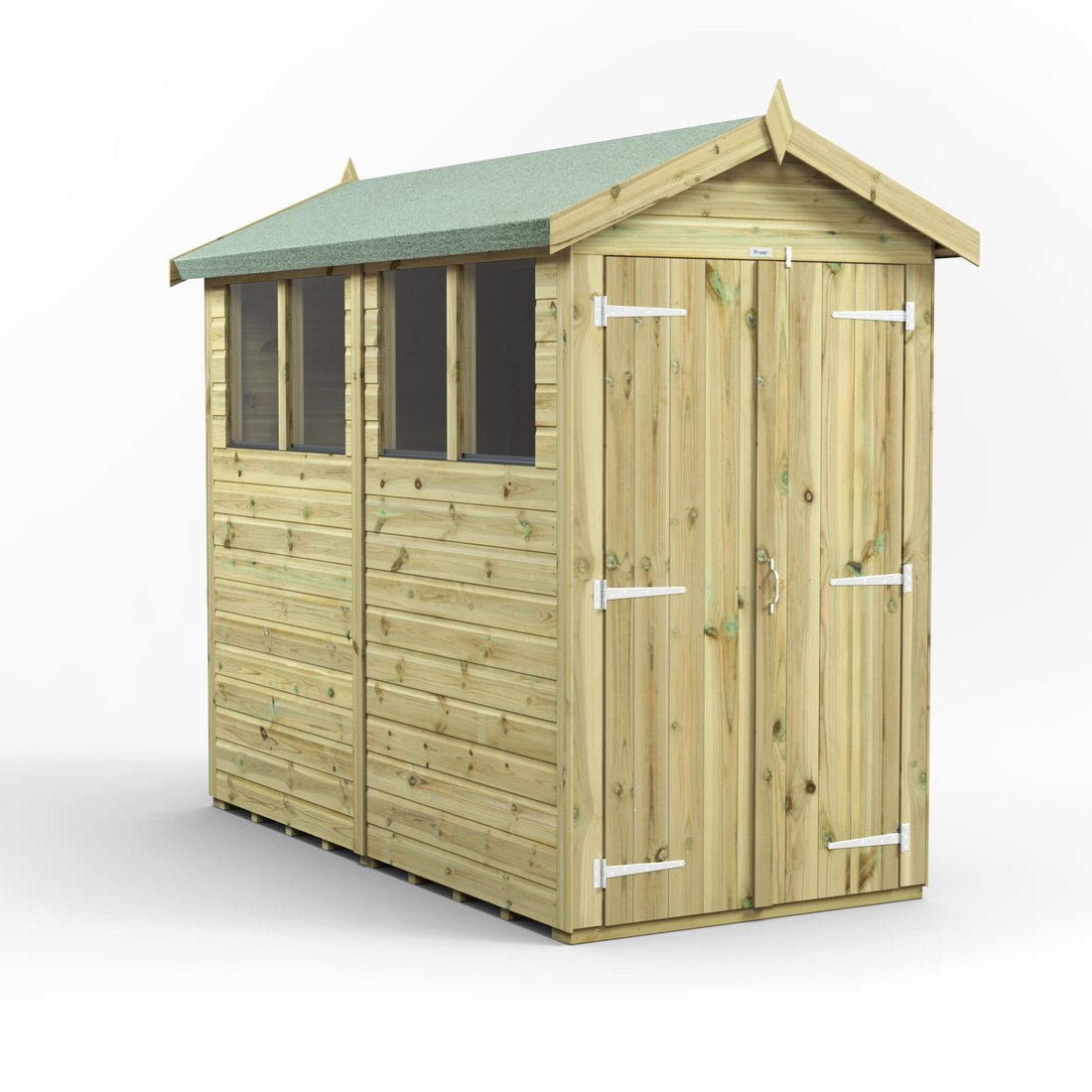 The Premium 8x4 Power Wooden Apex Sheds are guaranteed for 20 years against timber decay, rot, or insect infestation which ensures longevity and peace of mind. Powers commitment to sustainability is reflected in the premium-grade timber they use, responsibly imported in harmony with our sustainability policies. Each shed comes with a tall door for easy access and a high-security 5 pin cylinder lock for enhanced security. All our sheds are finished with a Performance Polyester Felt for a long life span.