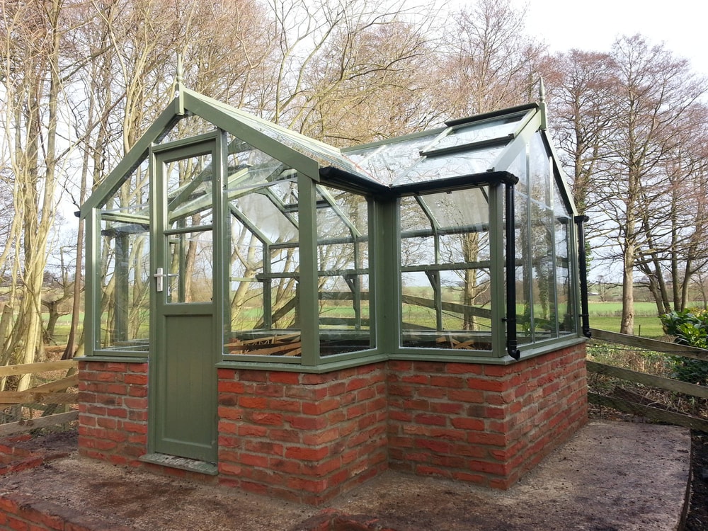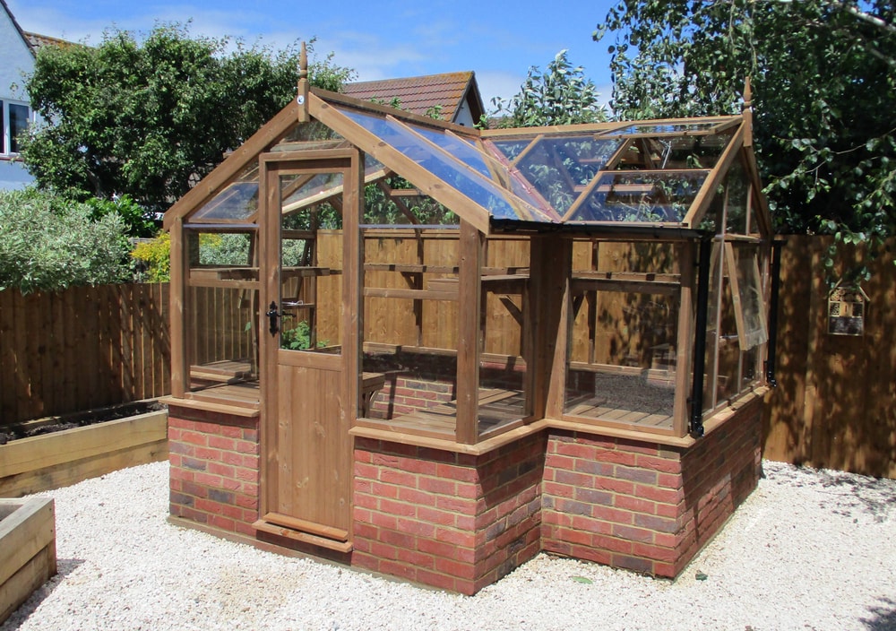 Order this Greenhouse customised to sit on a brick dwarf wall. Select this option and we'll send you a wall plan to give to your brick layer to complete your wall. We'll then install a version of this greenhouse with a window sill straight onto the wall.