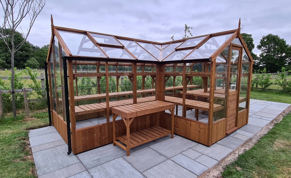 Wooden Greenhouses are very heavy, so the base needs to be solid! We recommend a base of either concrete or well-laid slabs. However, for smaller greenhouses, decking can also be a good option. If you want soil inside your greenhouse, you can make a perimeter base from bricks laid onto concrete footings.