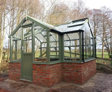 Order this Greenhouse customised to sit on a brick dwarf wall. Select this option and we'll send you a wall plan to give to your brick layer to complete your wall. We'll then install a version of this greenhouse with a window sill straight onto the wall.