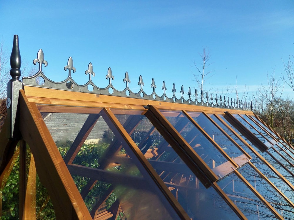 Wrought Iron Features make a big difference to the look of this greenhouse. Because of the traditional Victorian design of the Eagle, the addition of wrought iron roof crestings, door handle and side window latches really complete the look of this greenhouse, giving it a solid feel as well as great looks.