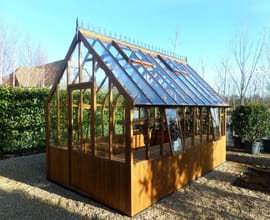 The Swallow Eagle Victorian Greenhouse represents British craftsmanship at its finest. Hand-built in Yorkshire from Scandinavian ThermoWood® these premium wooden greenhouses combine traditional Victorian elegance with modern growing technology. Each Swallow Eagle greenhouse features a distinctive 45-degree pitched roof, ornate wrought iron crestings, and narrow 15-inch glass bays that create an authentic period look.