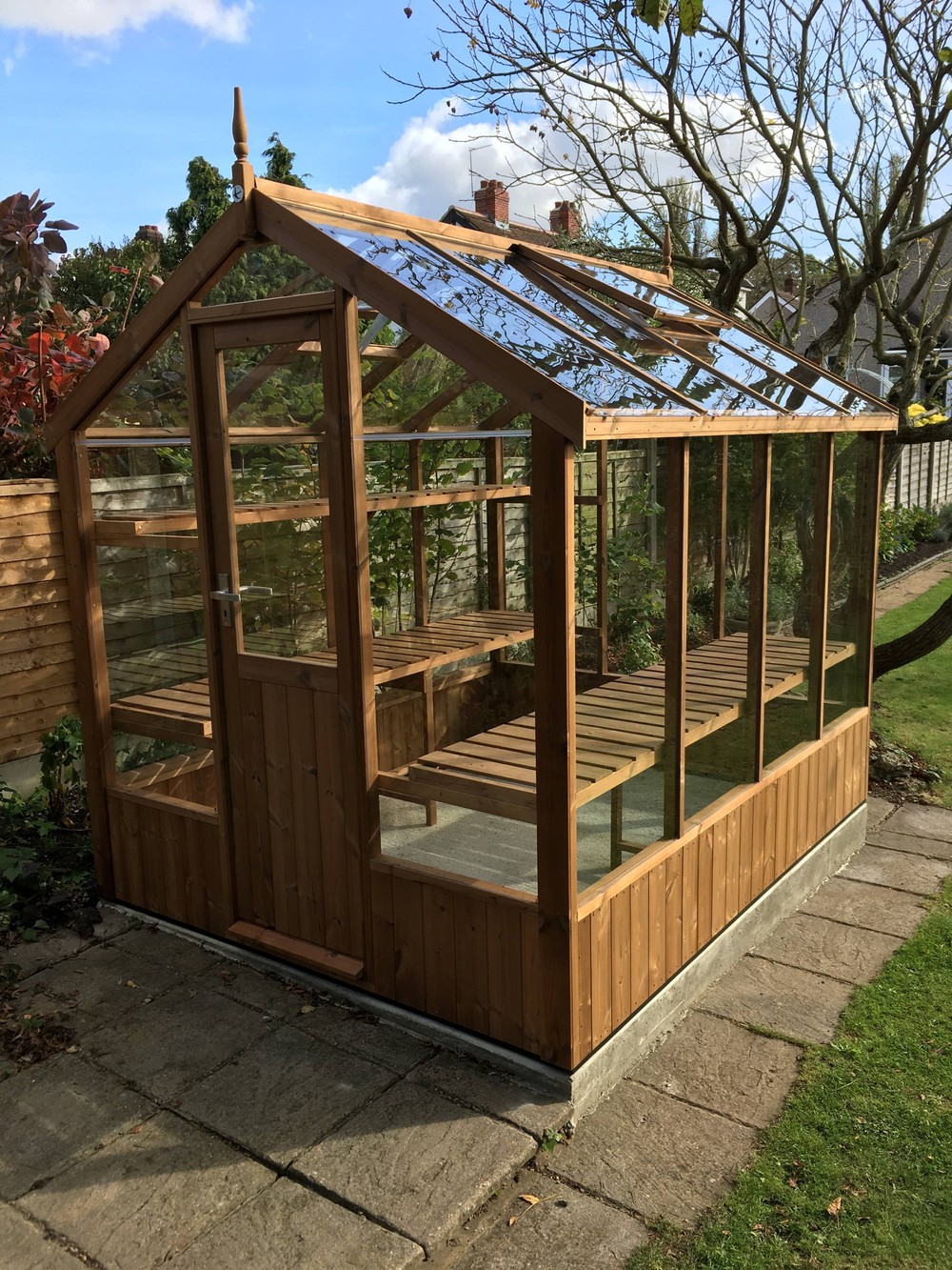 Order this Greenhouse customised to sit on a brick dwarf wall. Select this option and we'll send you a wall plan to give to your brick layer to complete your wall. We'll then install a version of this greenhouse with a window sill straight onto the wall.