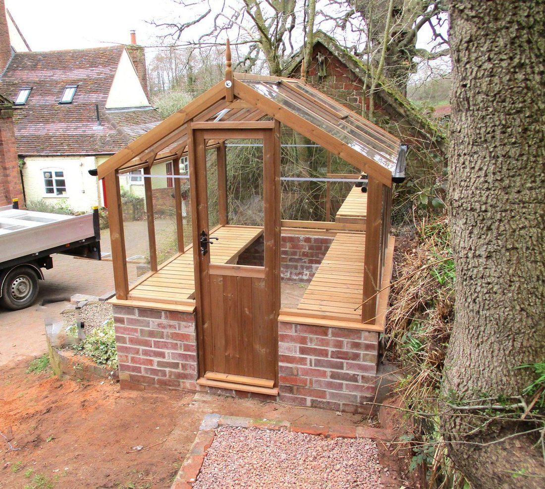 Order this Greenhouse customised to sit on a brick dwarf wall. Select this option and we'll send you a wall plan to give to your brick layer to complete your wall. We'll then install a version of this greenhouse with a window sill straight onto the wall.
