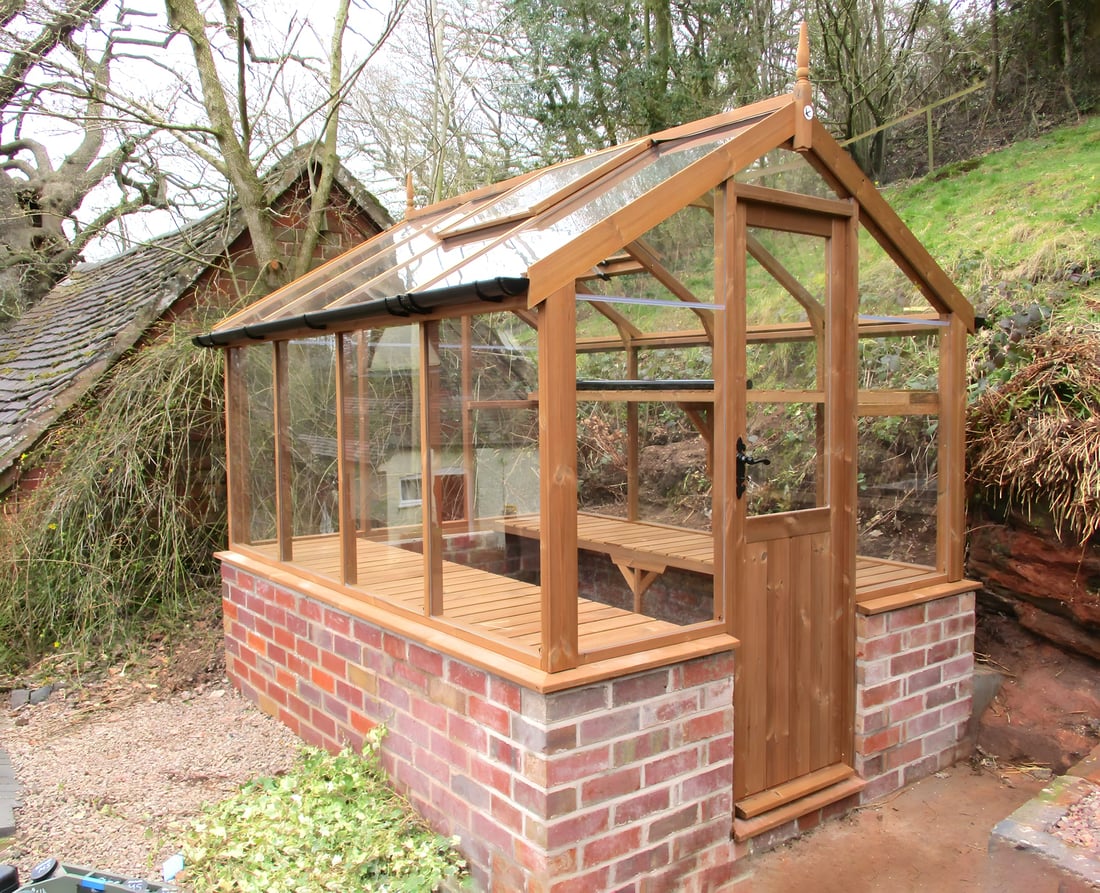 Order this Greenhouse customised to sit on a brick dwarf wall. Select this option and we'll send you a wall plan to give to your brick layer to complete your wall. We'll then install a version of this greenhouse with a window sill straight onto the wall.