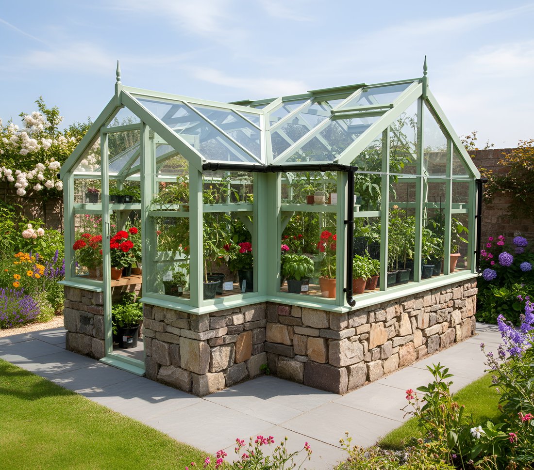 Order this Greenhouse customised to sit on a brick dwarf wall. Select this option and we’ll send you a wall plan to give to your brick layer to complete your wall. We’ll then install a version of this greenhouse with a window sill straight onto the wall.