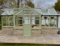 Order this Greenhouse customised to sit on a brick dwarf wall. Select this option and we'll send you a wall plan to give to your brick layer to complete your wall. We'll then install a version of this greenhouse with a window sill straight onto the wall.