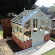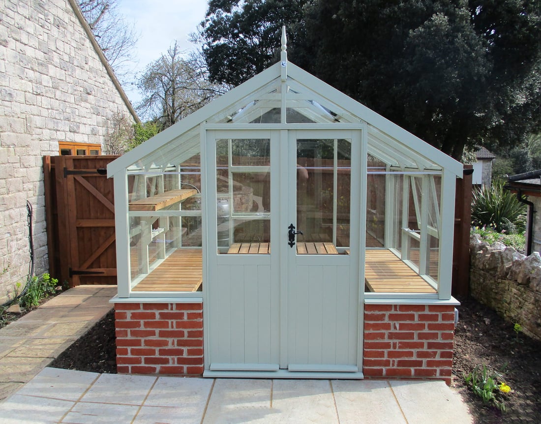 Order this Greenhouse customised to sit on a brick dwarf wall. Select this option and we'll send you a wall plan to give to your brick layer to complete your wall. We'll then install a version of this greenhouse with a window sill straight onto the wall.