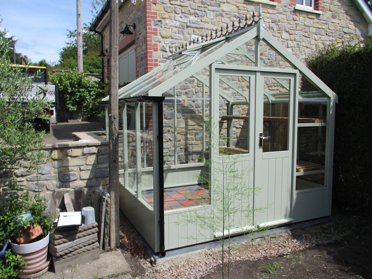 Order this Greenhouse customised to sit on a brick dwarf wall. Select this option and we'll send you a wall plan to give to your brick layer to complete your wall. We'll then install a version of this greenhouse with a window sill straight onto the wall.