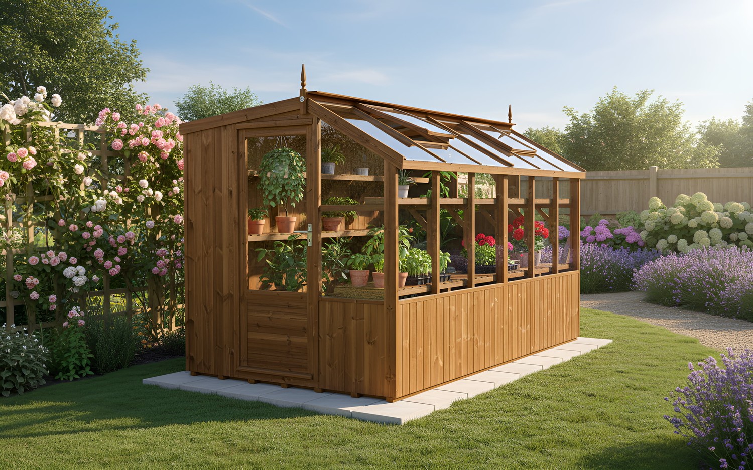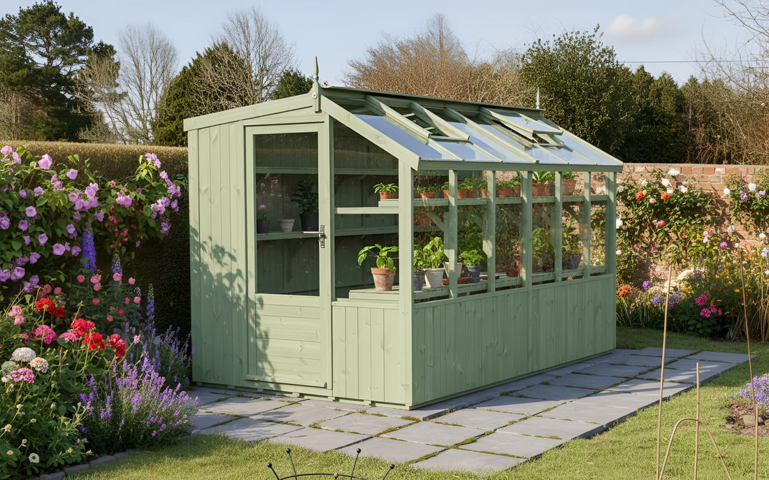 Add a 250mm wide high level shelf for extra storage of plants, seeds and tools etc