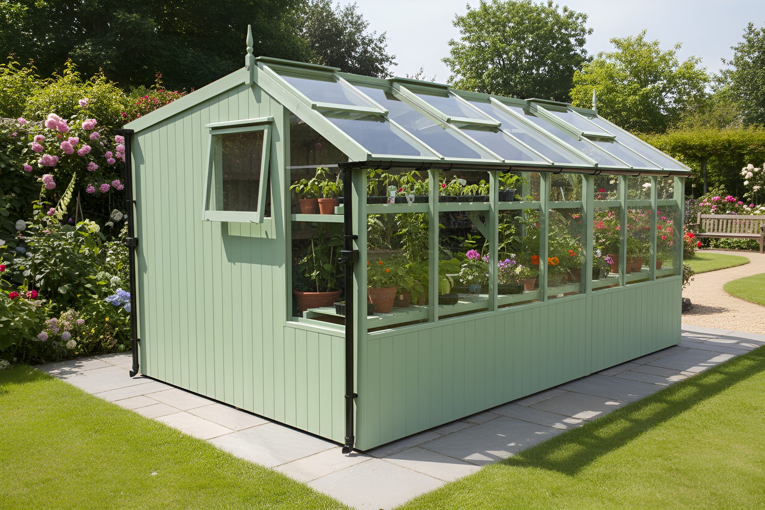 Add a 250mm wide high level shelf for extra storage of plants, seeds and tools etc
