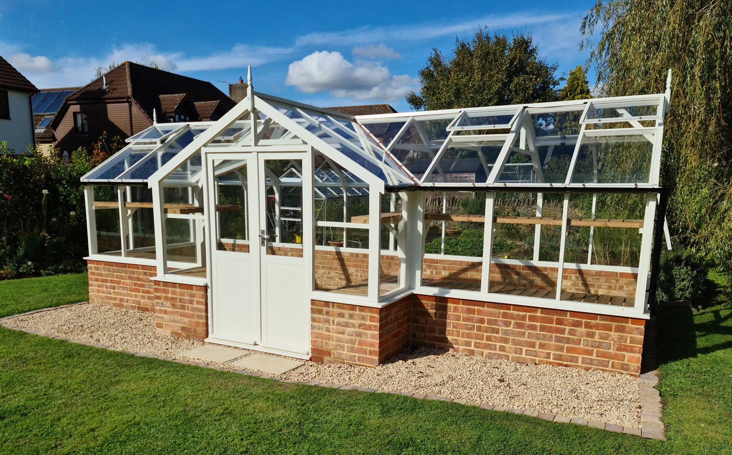 Order this Greenhouse customised to sit on a brick dwarf wall. Select this option and we'll send you a wall plan to give to your brick layer to complete your wall. We'll then install a version of this greenhouse with a window sill straight onto the wall.