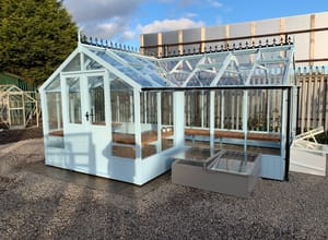The Swallow Swan Painted Greenhouse is our largest T-Shaped orangery style, offering an 8ft 9? gable and porch width for a spacious and elegant gardening experience.
