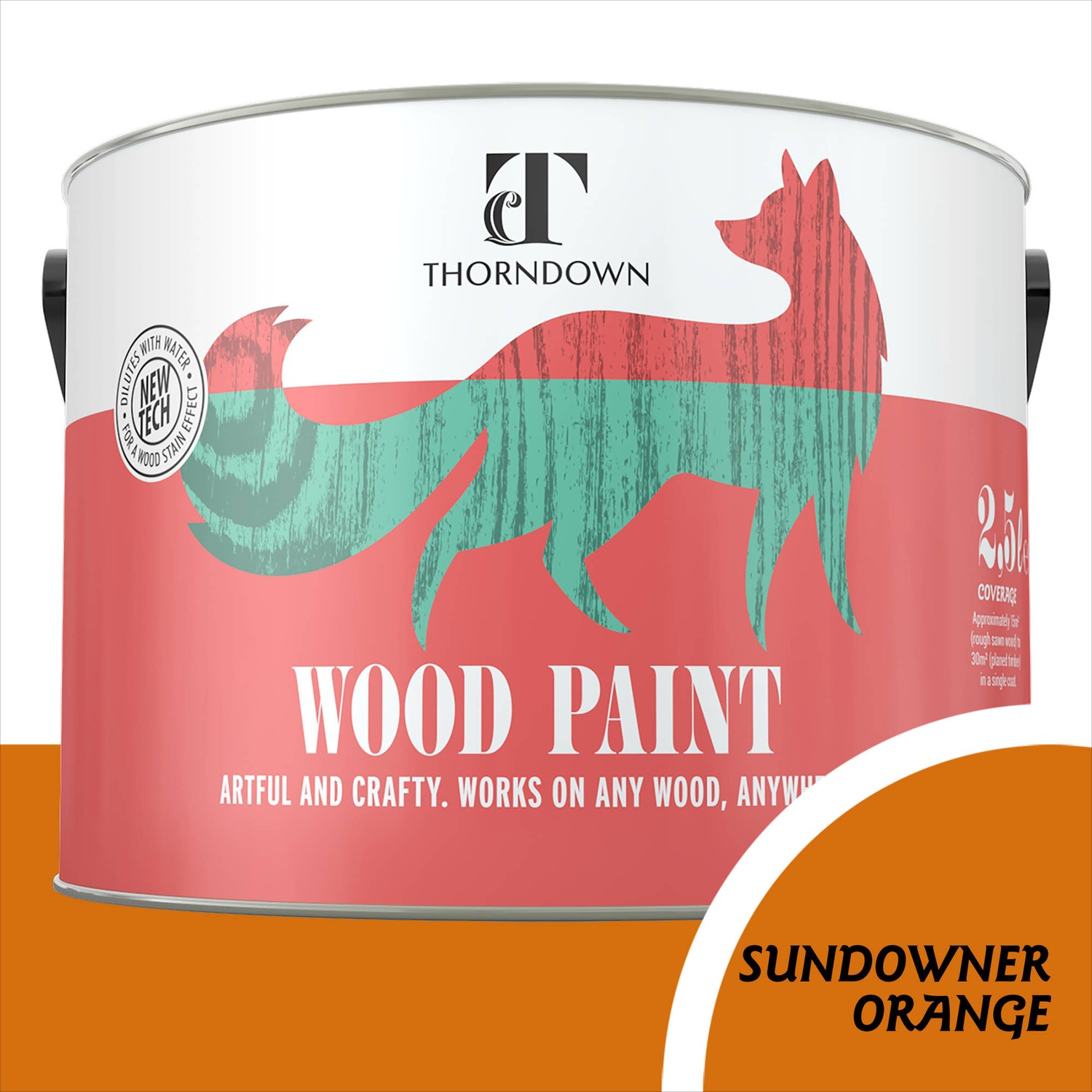 The Thorndown 2.5 Litre Sundowner Orange Wood Paint covers up to 12m² per litre per coat on planed/smooth timber and 6m² per litre on rough-sawn timber and also has minimal VOCs and is quick drying with a satin finish that highlights the grain of the wood. Whether you're painting a deck, Shed, Summerhouse or old Log Cabin, Thorndown Wood Paint is the perfect choice.