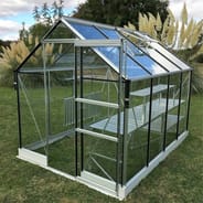 The Vitavia Apollo Silver 6x6 Greenhouse with horticultural glass is ideal for growing vegetables or sheltering delicate plants through the winter.