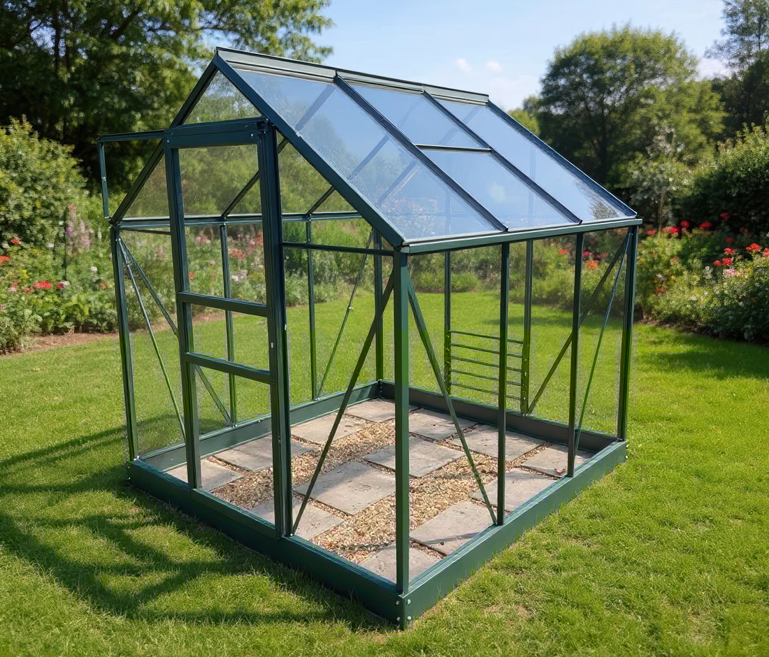 A louvre window brings fresh cool air into your greenhouse to moderate the temperature inside. An essential add on.