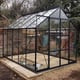 The 8x10 Black Vitavia Phoenix Greenhouse with 6mm polycarbonate glazing is super safe for families and looks very stylish indeed with it`s smart black frame.