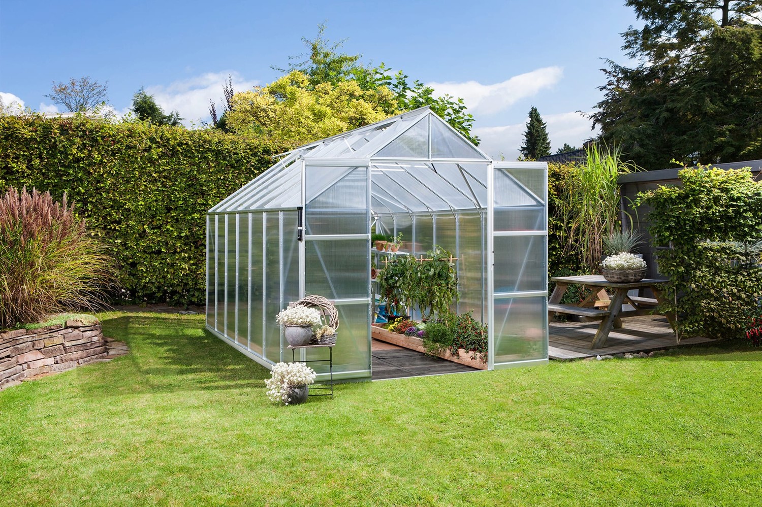 The 8x14 Silver Vitavia Phoenix Greenhouse with shatterproof 6mm polycarbonate is safe for gardens with children and dogs racing about. Also this twin wall polycarbonate provides amazing insulation for your plants year round