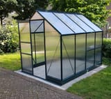 The Vitavia Apollo Green 8x6 Greenhouse with Polycarbonate Glazing looks great and is completely safe for use in family gardens. There`s no base to trip over, and no glass to break, perfect !