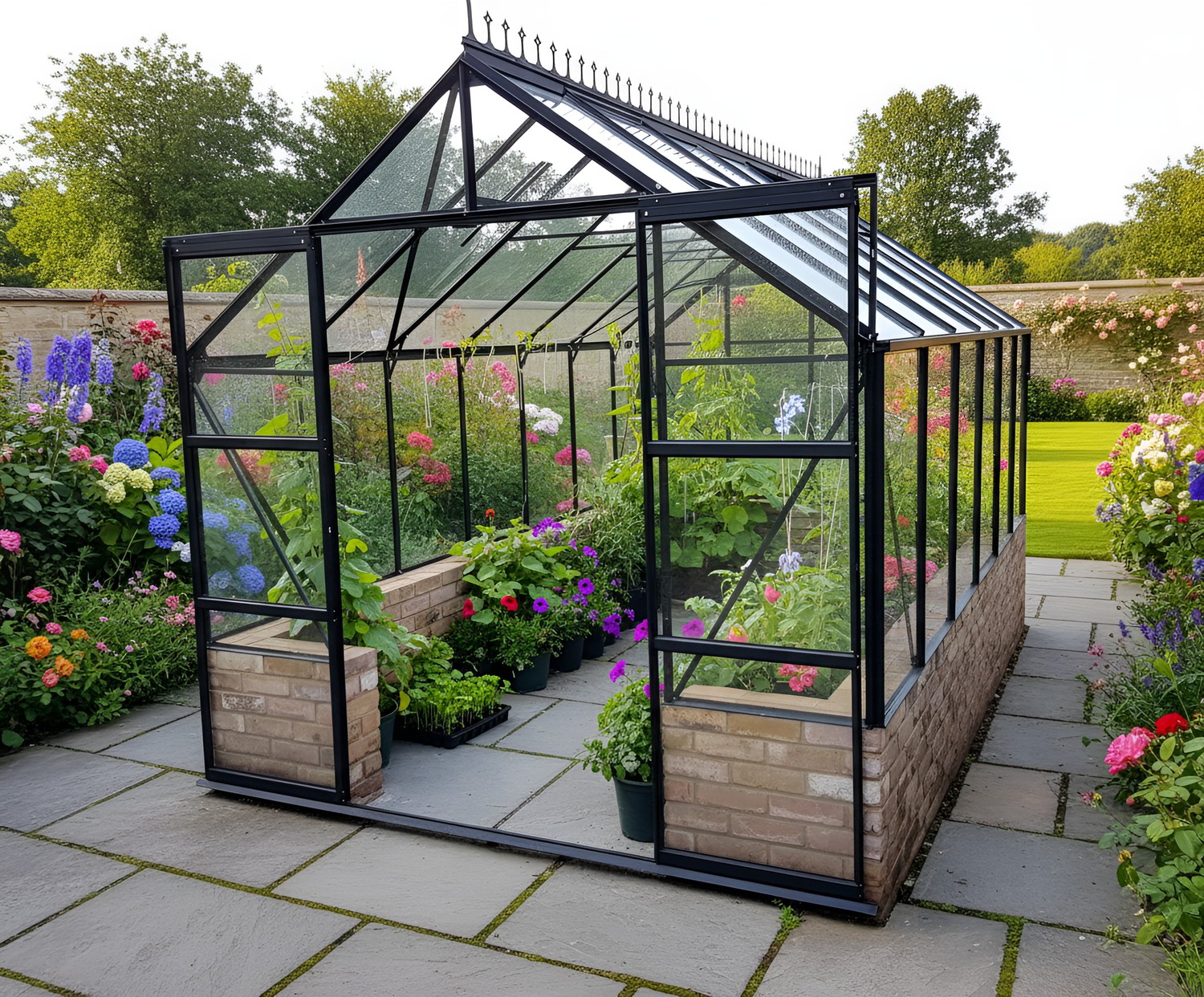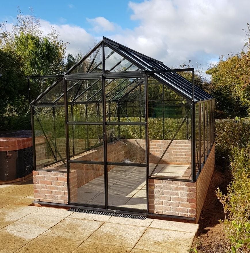 The Vitavia Cassandra Black 8x12 Dwarf Wall Greenhouse can be built on to a multitude of different bricks and blocks to make your greenhouse the centre piece of your garden!.