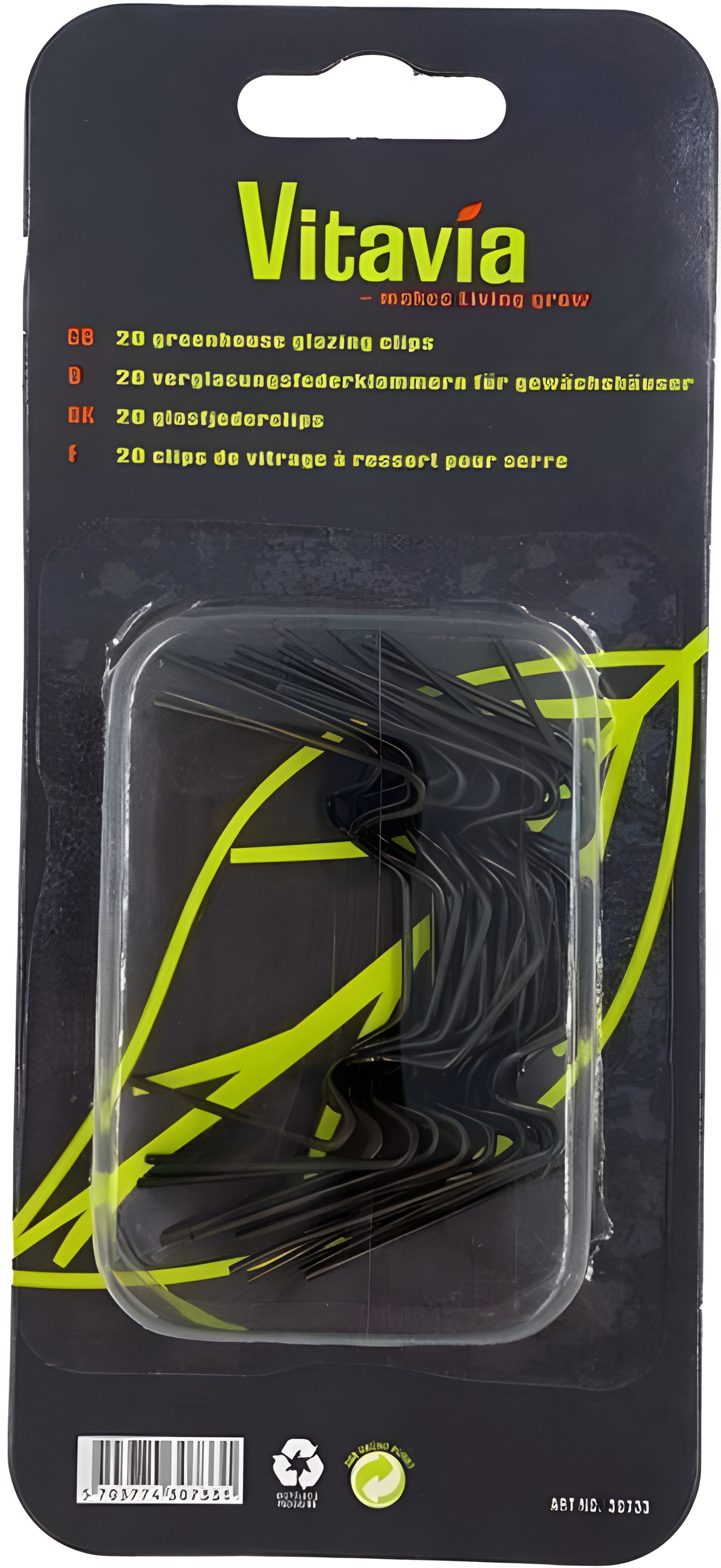 The Vitavia Glazing Spring Clips in Black Pack of 20 are essential components for securing glazing panels in your Vitavia greenhouse.