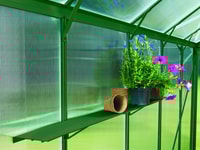 The Vitavia Green Aluminium Shelf is made from durable aluminium material. The shelf has a green powder-coated finish. It provides extra storage or workspace.