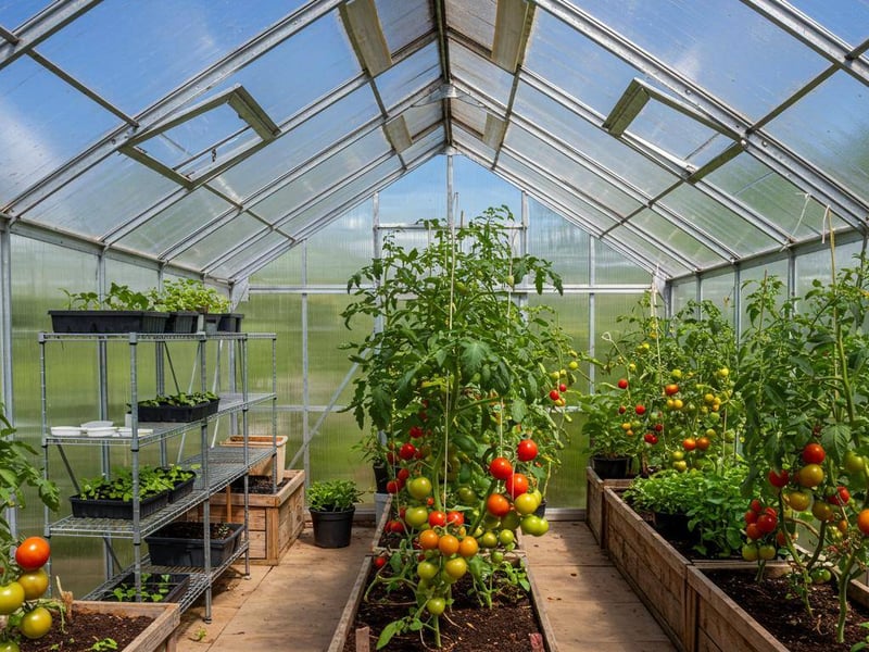 Open all vents when the temperature exceeds 25°C (77°F), use shade paint or blinds, damp down floors on hot mornings, and keep doors open during heat waves. Install automatic vent openers for consistent temperature control. For optimal greenhouse cultivation techniques, including soil preparation and pest management, refer to our guide on creating the perfect greenhouse environment.